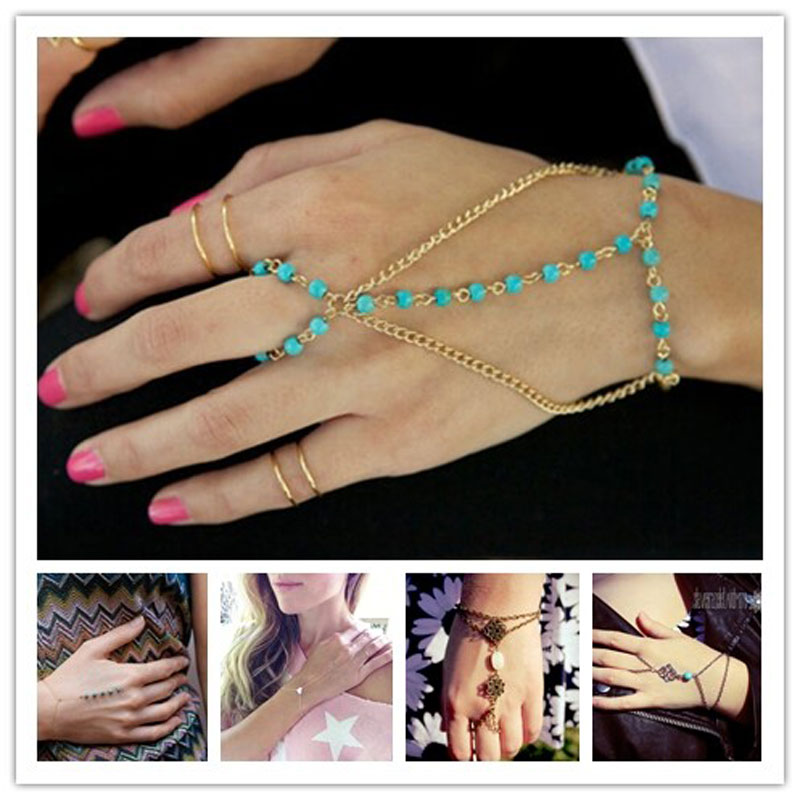 Son estas pulseras o manillas que se ponen al rededor de la muñeca y del dedo indice son unas pulseras diferentes y muy bonitas.Se ven muy bien con cualquier outfit, es perfecto para las mujeres a las que no les gusta ponerse muchos accesorios este les sirve como pulsera y como anillo.